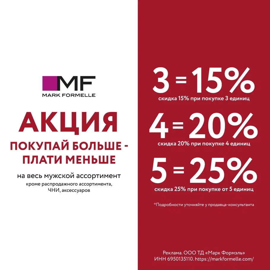 Только по 23 февраля в магазине Mark Formelle действует специальное предложение на весь мужской ассортимент.